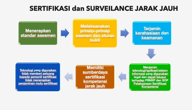 Selain itu, lembaga sertifikasi harus memiliki sumber daya yang memadai untuk mendukung pelaksanaan sertifikasi kompetensi jarak jauh, termasuk assessor dan infrastruktur teknologi.